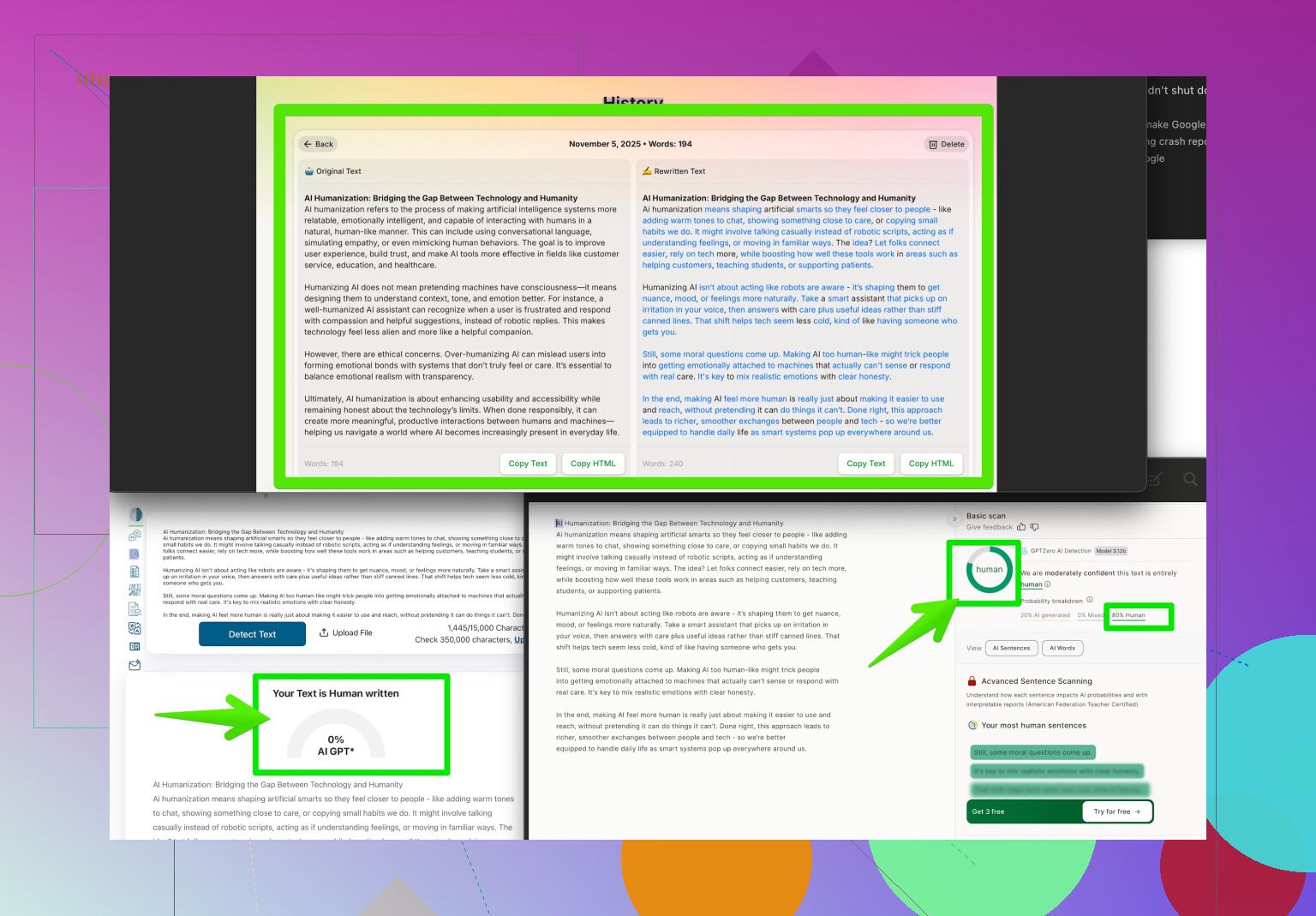 In short: Clever AI Humanizer + serious ATS checker like Jobscan/Rezi + a human set of eyes gets you 99% of the way there. Oh, and don’t obsess over “optimal length”—half these ATS things never even check that box.