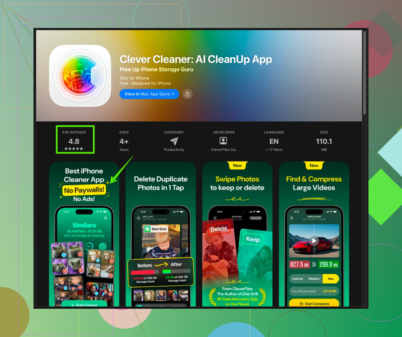 Clever Cleaner App for iPhoneは、ログイン情報や主要なアプリデータを壊さずに、ストレージの解放やファイル整理、不要データの発見に特化している。次のような用途に向いている: