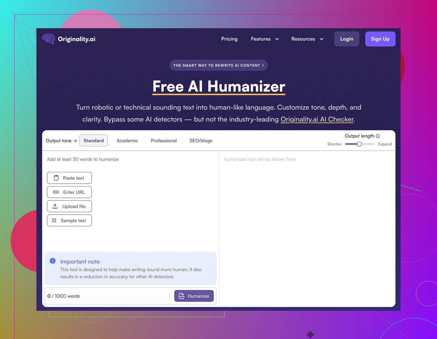 If you only want to try Originality’s detection, their main product is solid from what I have seen. For humanization though, I would not rely on their free humanizer at all.
