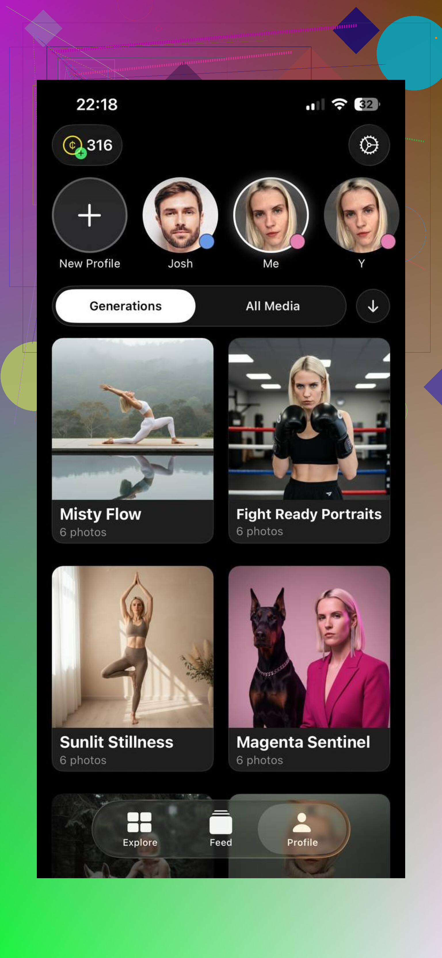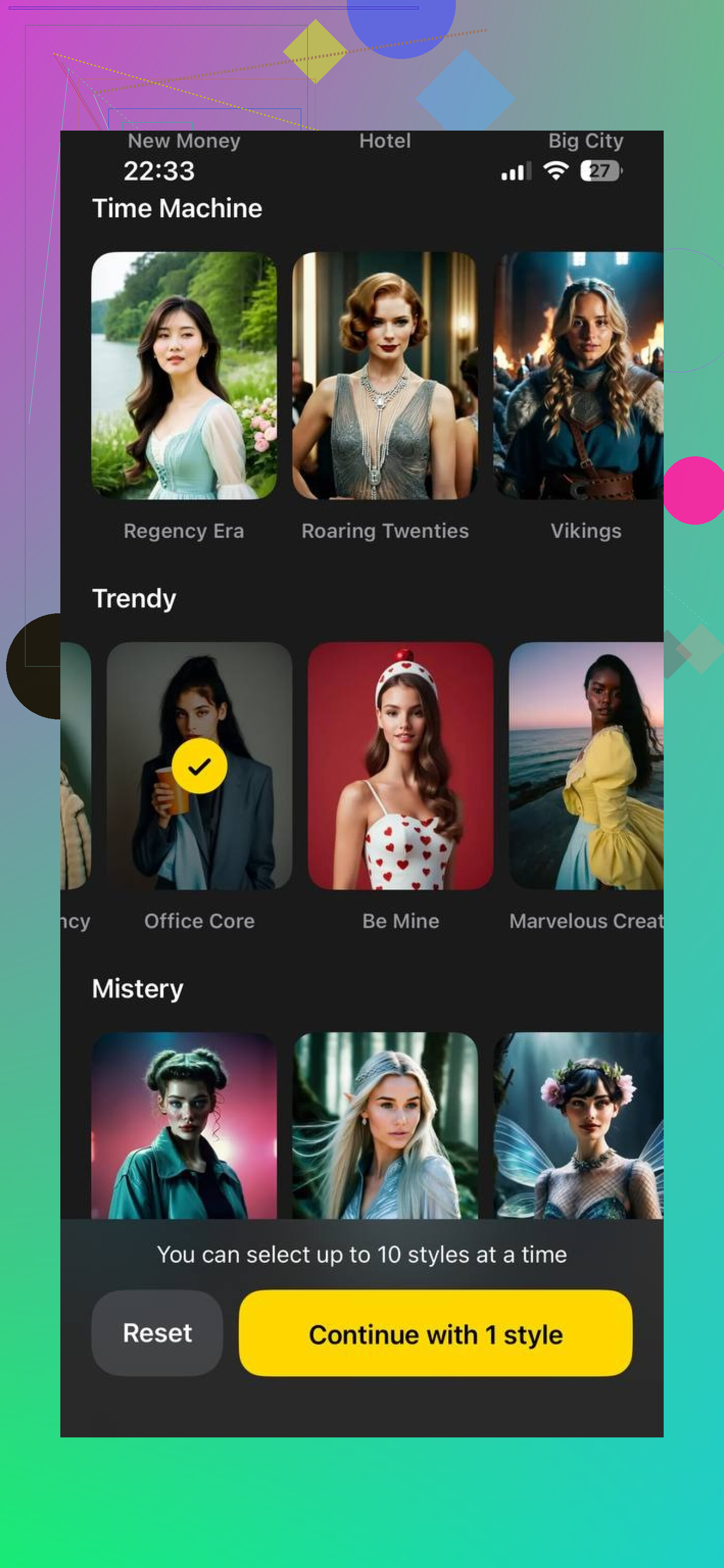 • AI avatars based on your face in different art styles.