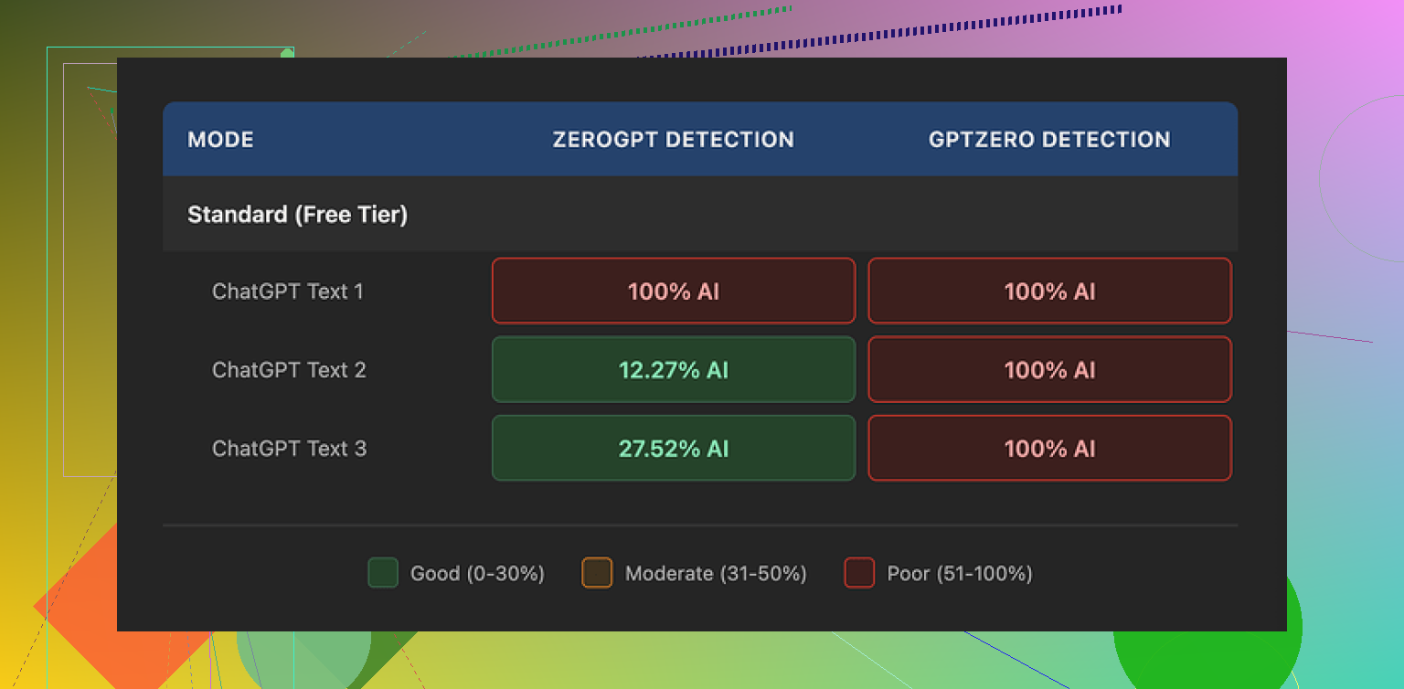 I took three different pieces of AI text, ran each one through WriteHuman, then checked the results with detectors.